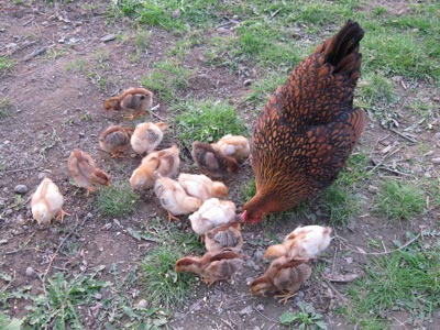 Our first box of chicks arrived USPS from Sears and Roebuck forty years ago. Since then, we've raised ducks, geese, goats, guineas, banties, beef and milk calves, pigs, and rabbits. Except for an interregnum following the year we raised 350 broilers, chickens have been a barnyard constant here. That summer we butchered them one by one down the family line, Mary and each daughter tending to a task after I bled and scalded them. 350 seemed like a good idea when they were peeps because they were free, the extras from a chick give-away promotion at the Ostrander feed mill. Time passed before anyone mentioned raising chickens again.