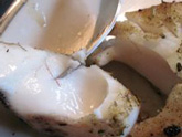 A whole chicken, and especially a rotisserie chicken, requires trussing to keep its body parts in close so it cooks as a unit. Chief (Chef Dan Hugelier) once showed me a quick and effective trussing method. I took sequence photos of the process, but a computer meltdown and corresponding memory loss forced me to find my own way. Before Chief, I tied chickens to the spit with a zeal that sometimes required multiple swipes of Alexander's own sword to remove one to the dinner table. My current method, developed after a morning spent wrestling with a length of cotton string and a well-massaged chicken, tucks thighs, legs, wings and neck tight to the body. I can do it quickly, the bird stays on the spit without wobbling, and it thereby cooks uniformly.