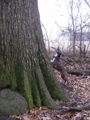 Sunday I walked to the deer stands I have behind the house. Took all my energy, but I did it. After I rested, I poked around a little in deer sign and saw that a doe family was regularly feeding on red oak acorns nearby, and that rutting bucks had rubbed half a dozen saplings raw.